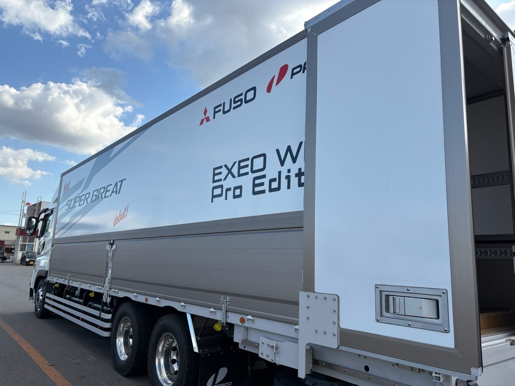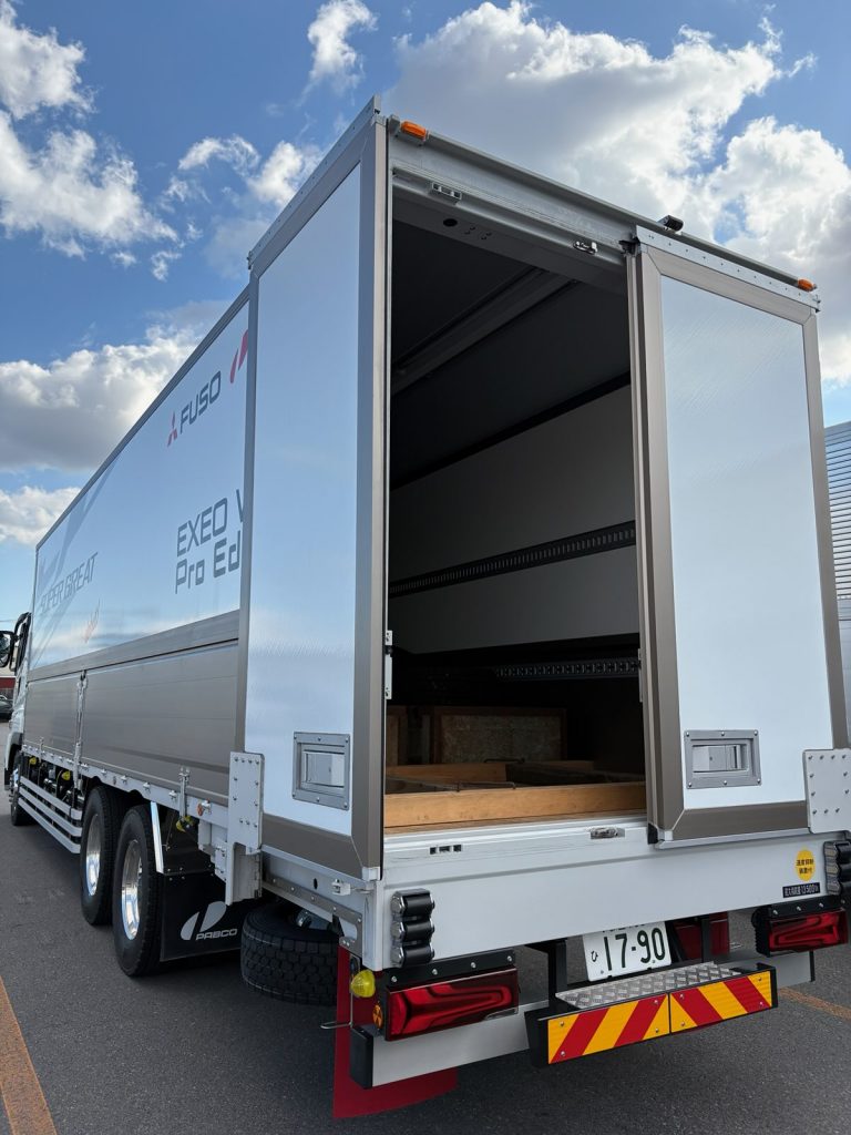 特筆するのは、箱の架装。ウィング車で後部扉を開いた後、押し込める仕様。